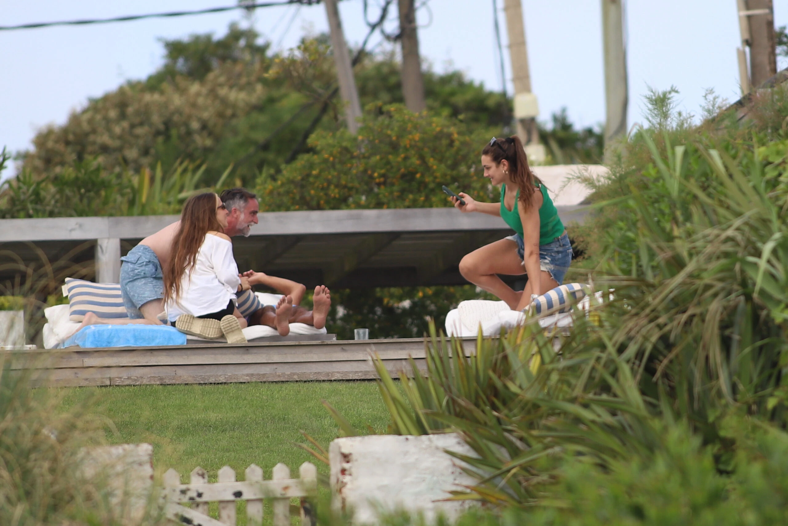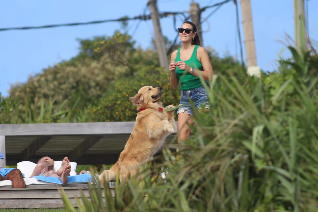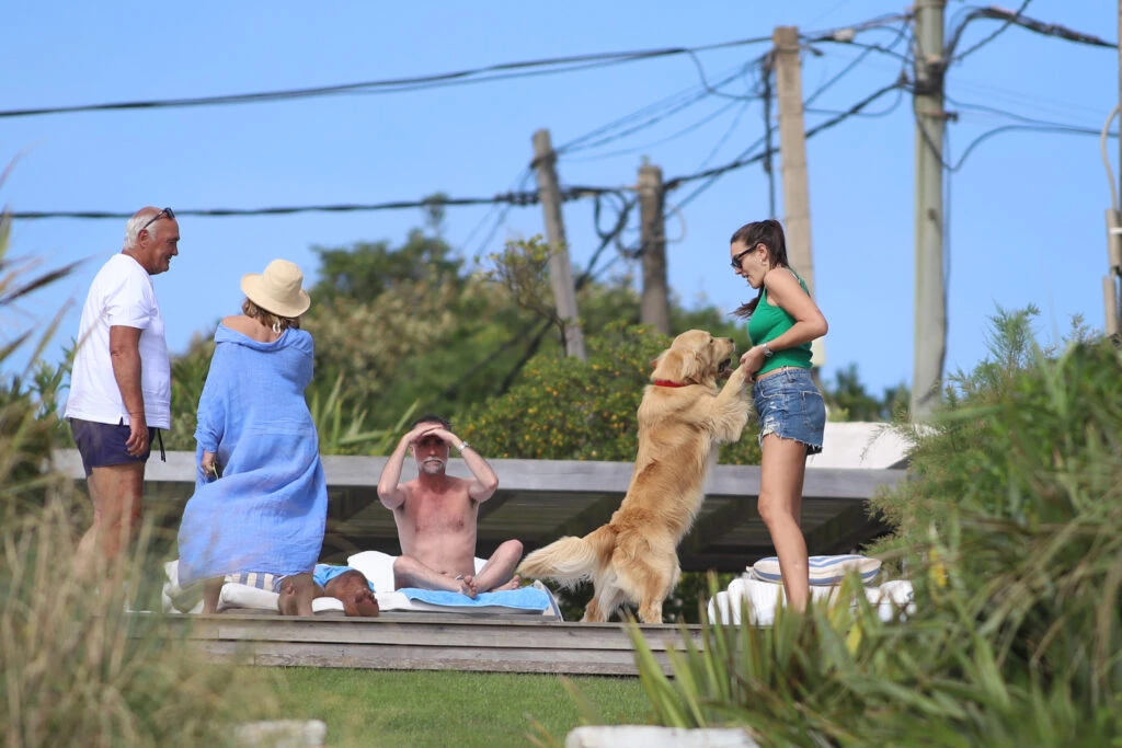 También está Lucía Pedraza, la novia de Nacho Viale, quien juega con la perra golden y sonríe.
