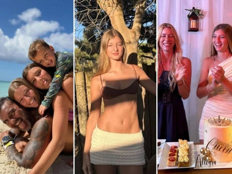 El repaso de Allegra también incluye imágenes junto a su familia, con escenas espontáneas, sonrisas y abrazos que dan cuenta del clima cercano y afectuoso que la rodea. En algunas postales se la ve acompañada por sus papás y niños, todos reunidos en la playa, en un registro descontracturado y familiar.
