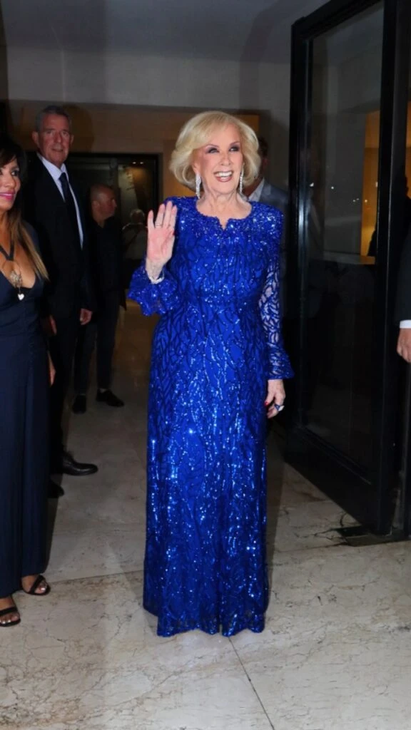 Como no podía ser de otra manera, Claudio Cosano estuvo a cargo del vestido que llevó Mirtha para su celebración de cumpleaños. La conductora llevó un vestido maxi con mangas largas y detalle de volado color azul Francia en que los bordados se robaron todo el protagonismo, y aportaron mucho brillo.