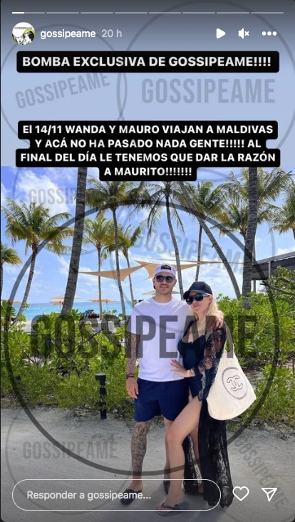 "Ahora se confirmó que el 14 de noviembre se van a las islas Maldivas, aunque no está claro si se van solos o con los chicos", agregó la influencer. "Evidentemente era un viaje que tenían programado pero que lo habían suspendido por la crisis y que ahora retoman", confirmó la dueña de la cuenta Gossipeame.