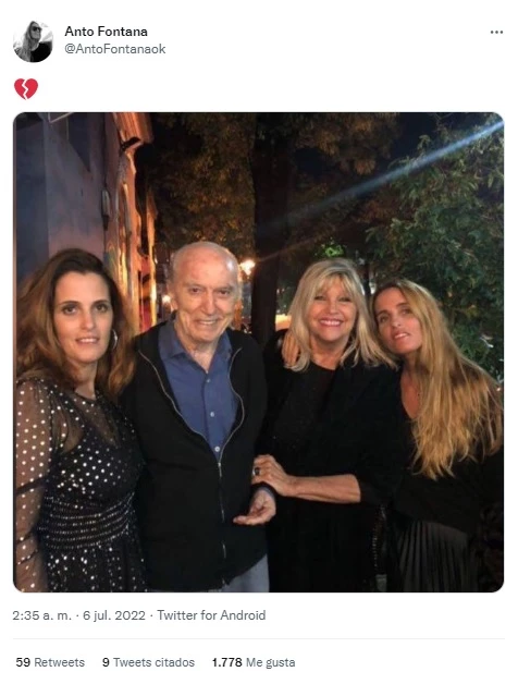 Horas después de la muerte de Liliana Caldini, murió su ex Cacho Fontana a sus 90 años tras batallar contra una neumonía. El reconocido locutor y la exmodelo fueron pareja durante 12 años y tuvieron mellizas, Antonella y Ludmila.
