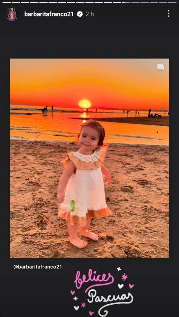 Por otro lado, Barby Franco publicó varias postales de sus días en Punta del Este, donde pasó este fin de semana largo junto a Fernando Burlando y Sarah. "Felices Pascuas", expresó la modelo en sus redes mostrando a su pequeña disfrutando de la playa.