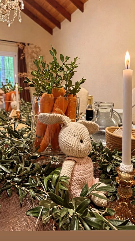 Por su parte, la mesa del almuerzo de Barby Franco y Fernando Burlando estuvo decorada con zanahorias y ramas de olivos. Por medio de las redes sociales, la familia mostró los detalles de este detalle elegante y, que sin duda, hizo la diferencia.