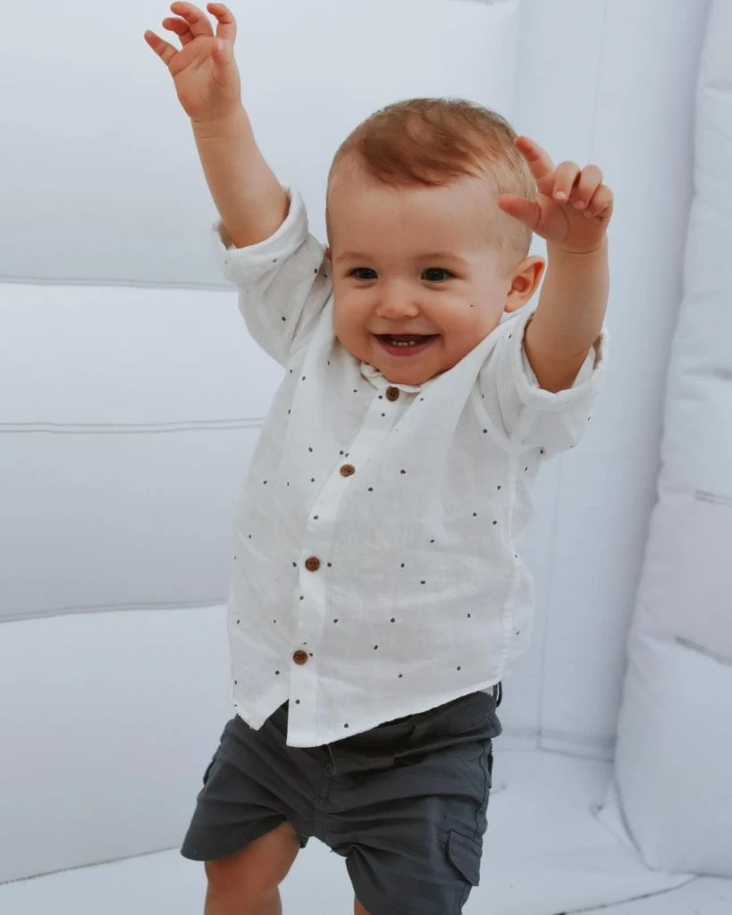 Siguiendo con el alma de la fiesta, Diana usó un vestido con estampado floral, con hombros descubiertos y estilo bohemio, que acompañó con un short de jean y sandalias. Por su parte, Noah llevó una camisa blanca con pequeños lunares y unas bermudas en tono verde militar, luciendo muy adorable.