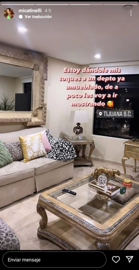 Además, contó a sus dos millones de seguidores que durante su tiempo libre se entretiene decorando cada rincón de su nuevo hogar. En unas historias subidas a su Instagram este martes, Mica compartió imágenes donde dejó ver los muebles y la decoración que eligió para su casa de Tijuana.