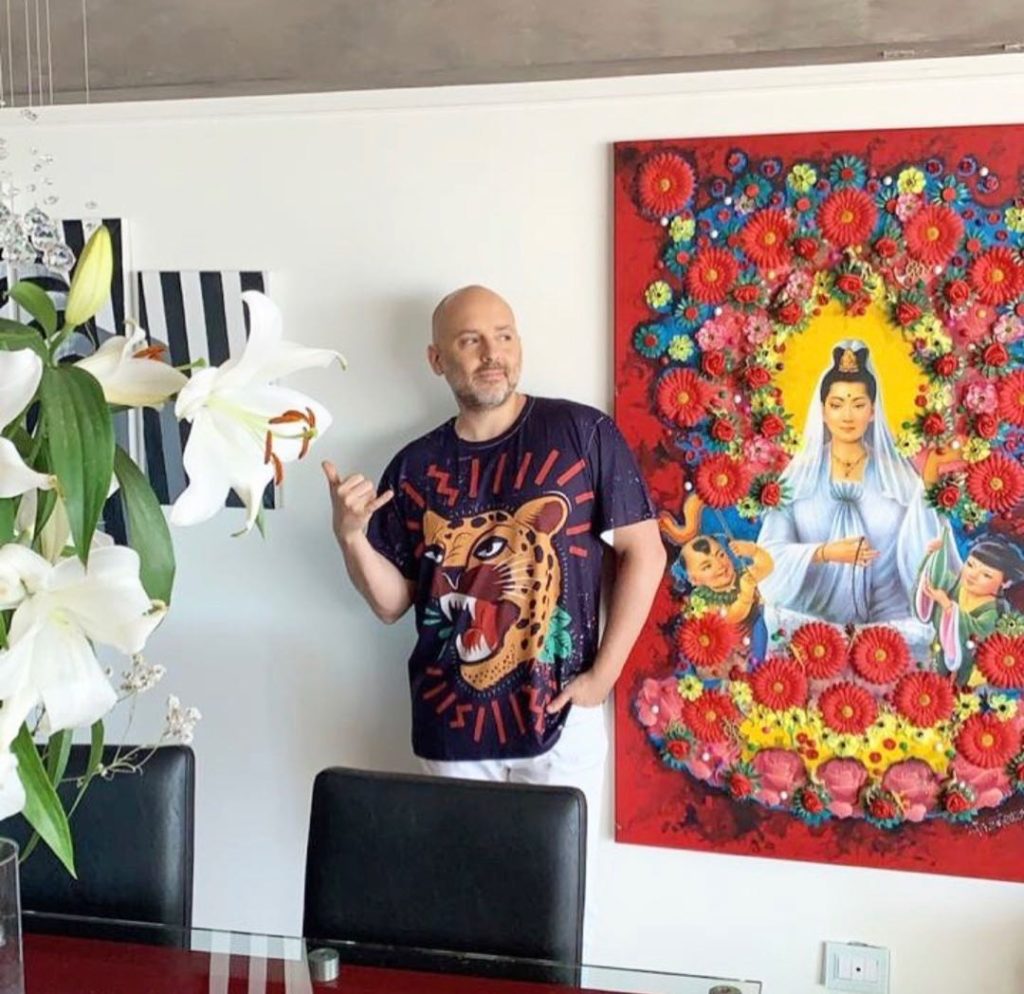 No es raro que Muscari sea un amante de la pintura y, precisamente por ello, ha invertido en importantes obras de arte como este auténtido Milo Lockett con el que posó en su cuenta de Instagram.