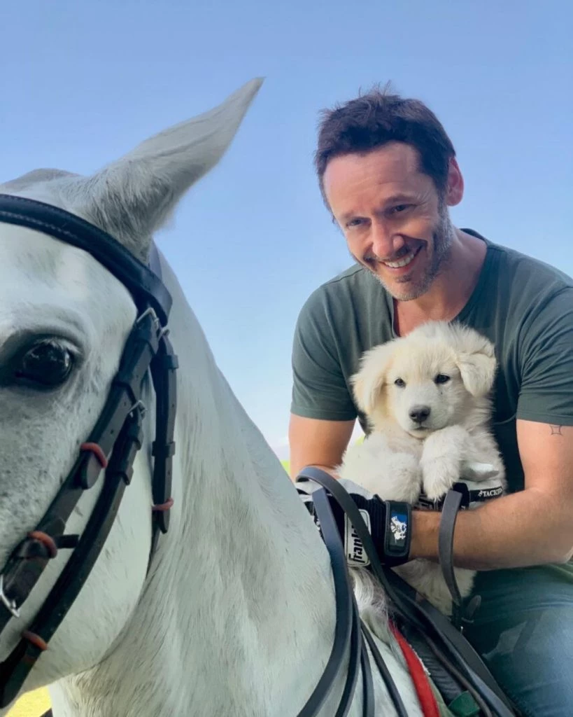 “Naturaleza y hogar”, escribió el actor al subir una foto en su cuenta de Instagram en donde se lo puede ver montando un caballo y con un perrito blanco en sus brazos. Él está instalado en el lujoso campo Haras Sumaya, propiedad de Isabel Luco Morandé al lujoso, su mamá, y del empresario millonario de origen turco con el que se vinculó después de separarse de su marido, Oussama Aboughazale.