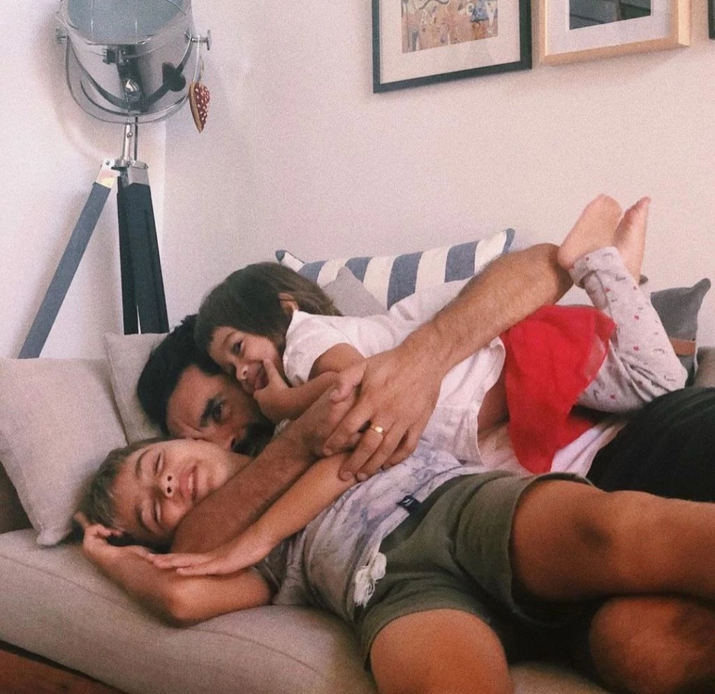 En el living hay varios sillones -en tono arena y verde seco- con almohadones de colores en los que Gonzalo suele jugar con sus hijos y también mirar películas con ellos.