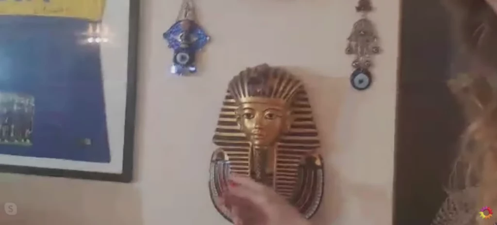 Entre los elementos traídos del exterior, sorprendieron un papiro y otros elementos egipcios. Fátima dejó en claro que es fanática de esa cultura.