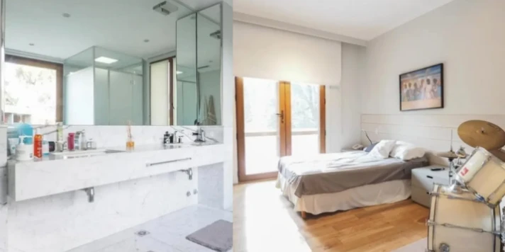 Un detalle distintivo de la casa es la presencia de un sector dedicado al trabajo artístico. Lali integró un área de estudio donde conviven instrumentos, equipos de grabación y objetos personales vinculados a su carrera musical. Este ambiente no solo cumple una función profesional, sino que también refleja su identidad creativa.