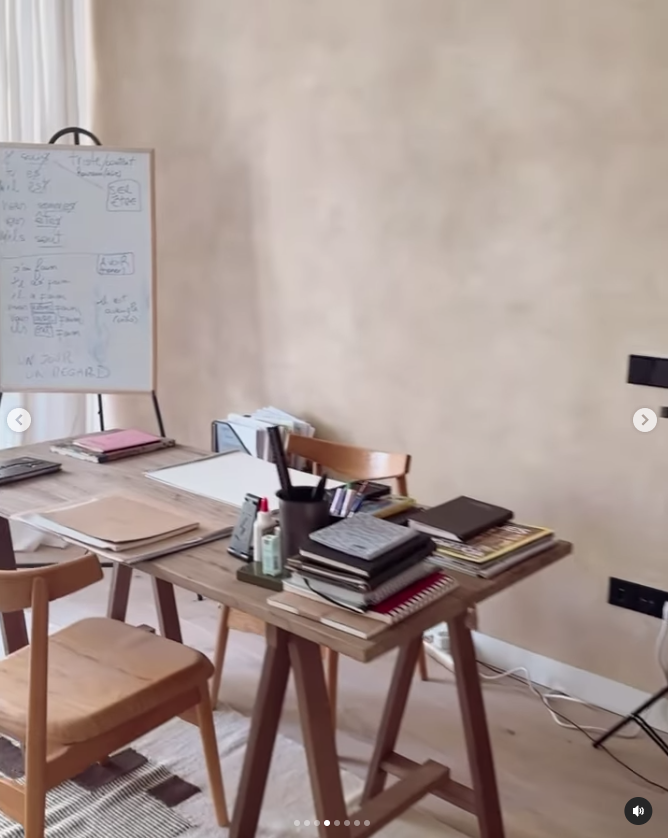 En un video que Carla compartió con sus seguidores, es posible ver una habitación que la familia usa como estudio, muy luminosa. Allí hay un escritorio de madera clara, un gran espejo donde la esposa del Cholo se reflejó y, la gran vista que tiene el lugar, que da al parque de la casa.