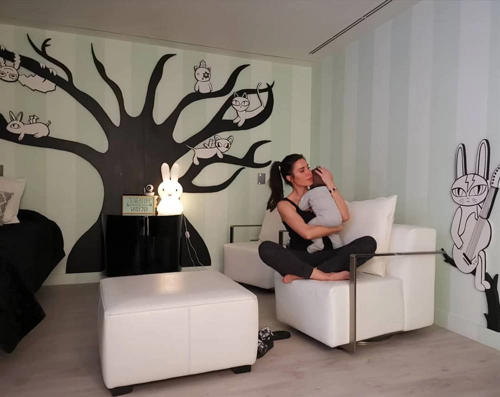 El cuarto de uno de los hijos tiene un mural ilustrado con un enorme árbol negro con animalitos con un punto rockero (uno de ellos lleva un ojo pintado como David Bowie) y un conejo que toca la guitarra.