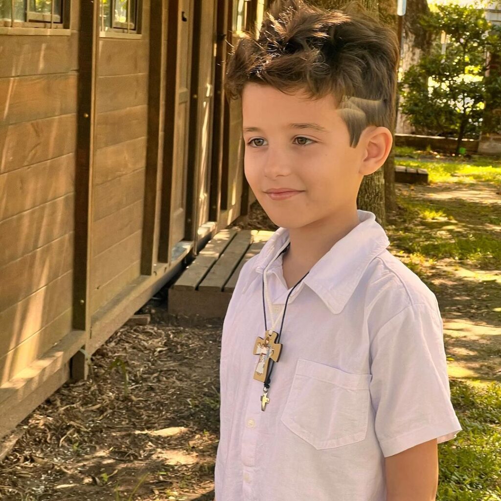 Por otro lado, el hijo de Sabrina tiene como hobbie jugar videojuegos, es fanático de la Selección Nacional ya que fue la temática de su último cumpleaños, cursa el quinto grado de primaria y está educado bajo la religión católica debido a que tomó la comunión hace poco tiempo.