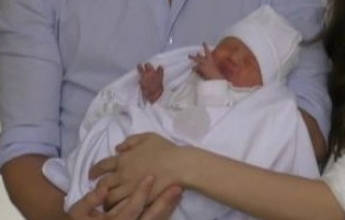 Pampita, que fue la primera en aparecer, lucía radiante, con look total white de pantalón y blazer. La modelo saludó con la mano a los periodistas. Luego salió García Moritán con la beba en brazos.