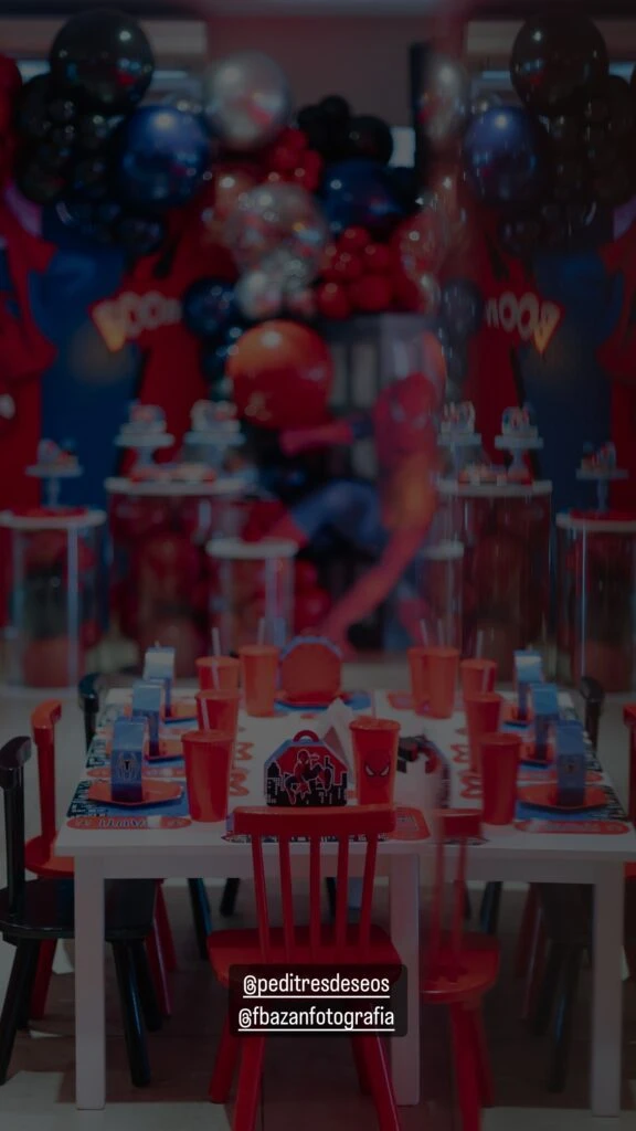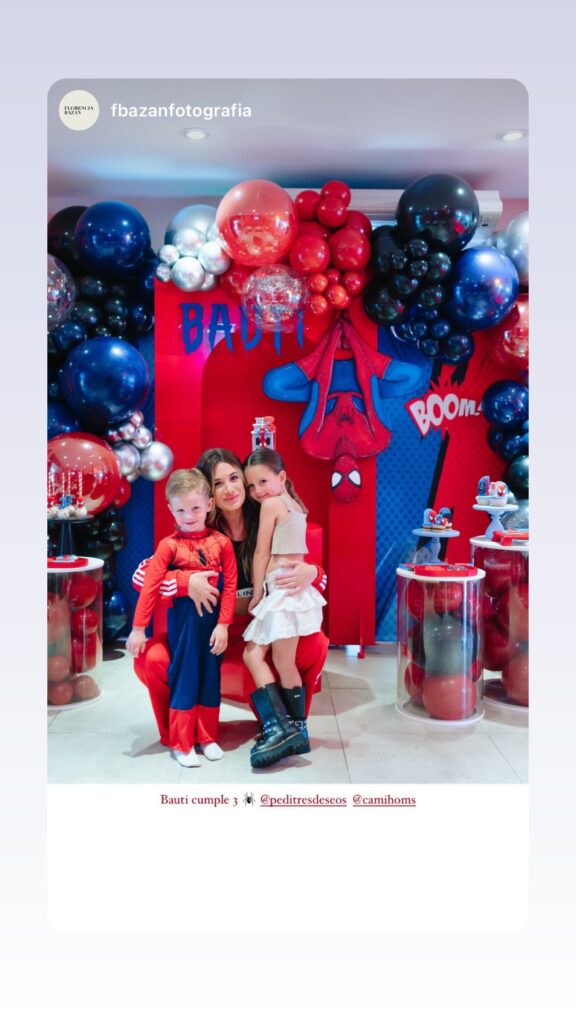 Fue la propia Homs quien compartió los detalles de este evento, inspirado en el héroe de Marvel, Spiderman. En las imágenes, se puede ver una decoración con globos azules, plateados y rojos, característicos de este personaje.