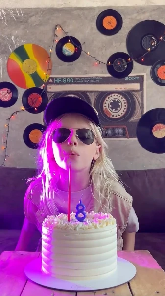Para este evento, el niño llevó varios outfits que siguieron la línea de la estética del cumpleaños. Por un lado, usó una remera blanca, con chaleco beige, gorra y gafas oscuras, que fue utilizado para la hora del "feliz cumpleaños". También se lo vio con una camiseta a rayas verdes con un pantalón oscuro ancho, acompañando al espíritu de la ambientación. El detalle estuvo en la actitud: lejos de looks producidos o excesivos, se eligió una estética relajada, funcional para moverse, jugar y disfrutar.