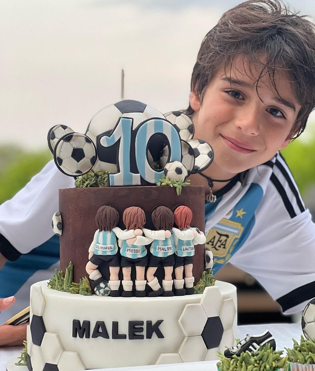 "Amor infinito", escribió Zulemita en sus redes sociales, compartiendo la foto de su hijo posando con la remera de Argentina. Malek es tan fanático que, eligió una torta con el diseño de los colores celeste y blanco, donde aparecen sus jugadores favoritos. El pequeño es seguidor no sólo de Leo Messi, sino también de Lautaro Martínez y de Ángel Di María.