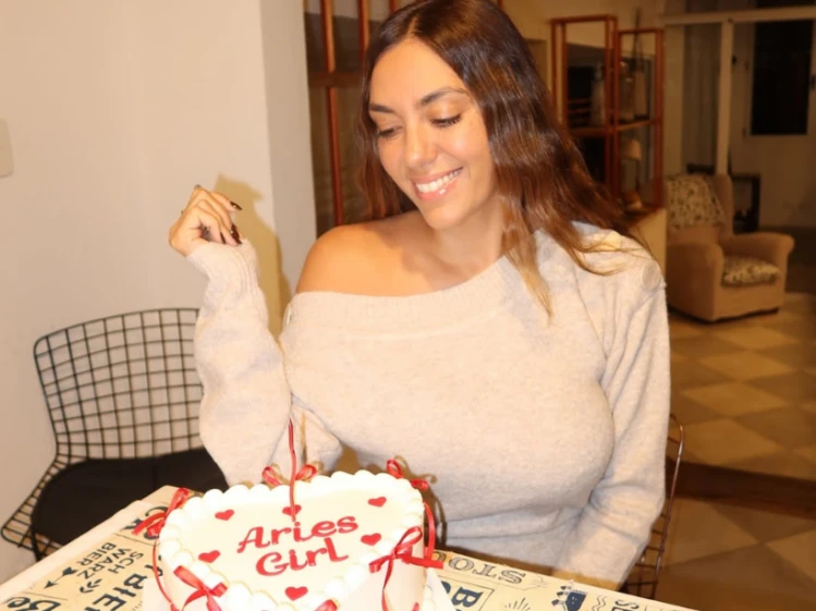 La actriz comenzó los festejos a la medianoche, cuando su hija Moorea la sorprendió con un cartel que decía “Feliz cumple mamá”. En un clima íntimo y cargado de emoción, sus seres queridos acompañaron el momento mientras su pareja, Salvador Becciu, sostenía una torta de crema blanca decorada con la inscripción “Aries Baby” con detalles rojos.
