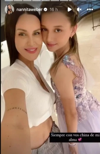 Por otro lado, la esposa de Zárate también compartió parte de una presentación, donde su hija se lució como bailarina y actriz. "Siempre con vos, china de mi alma", escribió, en una fotografía donde ambas lucen felices y muy compañeras, dando cuenta que el camino artístico de Mía recién comienza. La diseñadora a cargo del vestido de Mía fue Nuria Bueno y el desfile se realizó en el Sofitel de Recoleta.