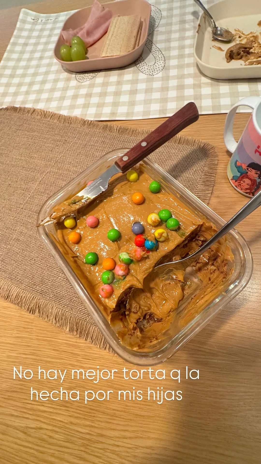El cumpleañero fue sorprendido con una torta artesanal de dulce de leche y confites de chocolate, realizado por su propia familia. "No hay mejor torta que la hecha por mis hijas", expresó el hombre orgulloso de este pequeño gesto de amor.