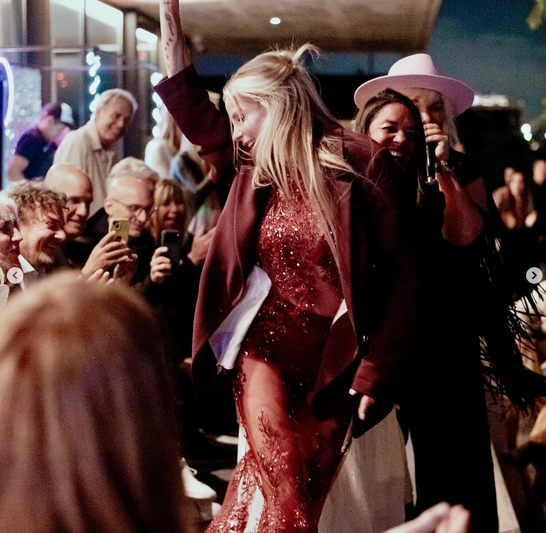 El modelo, de silueta ceñida y cuello halter, destacó su figura y reflejó su espíritu libre y seguro. Con el cabello suelto, maquillaje natural y una gran sonrisa, la empresaria se convirtió en el centro de todas las miradas.