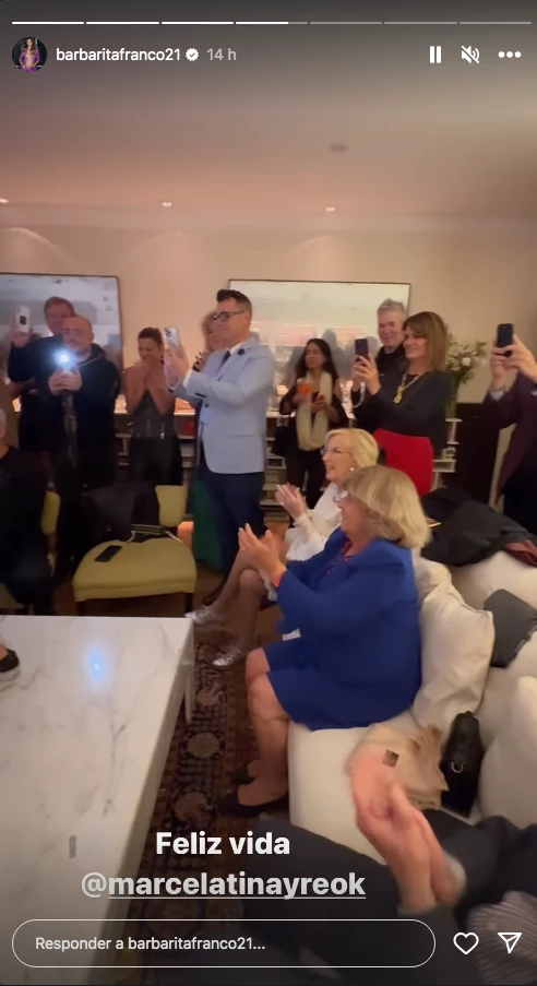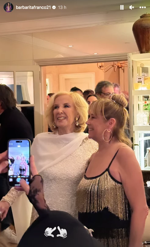 Desde sus redes sociales, Barby Franco compartió con sus seguidores uno de los momentos más divertidos de la noche: Marcela bailando con Juana arriba de una mesa ratona de mármol al compás de un tema de los '80.
