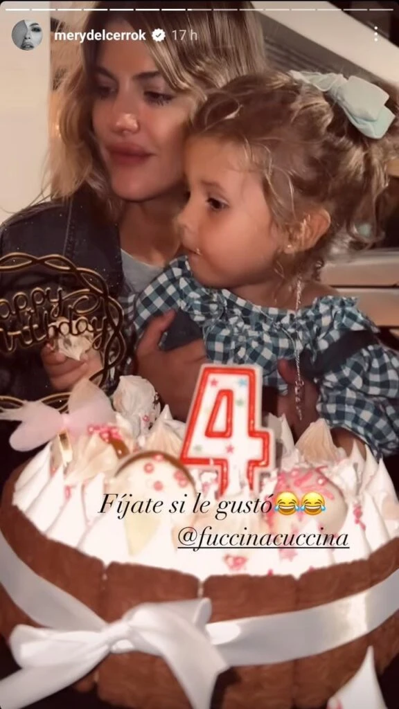 Estas vacaciones también coincidieron con el cumpleaños de Cala, su hija menor, quien este 14 de abril cumplió 4 años. A través de sus redes sociales, Mery compartió las postales del festejo que fue muy familiar e incluyó soplado de velitas en el restaurant en Miami al que fueron a cenar.