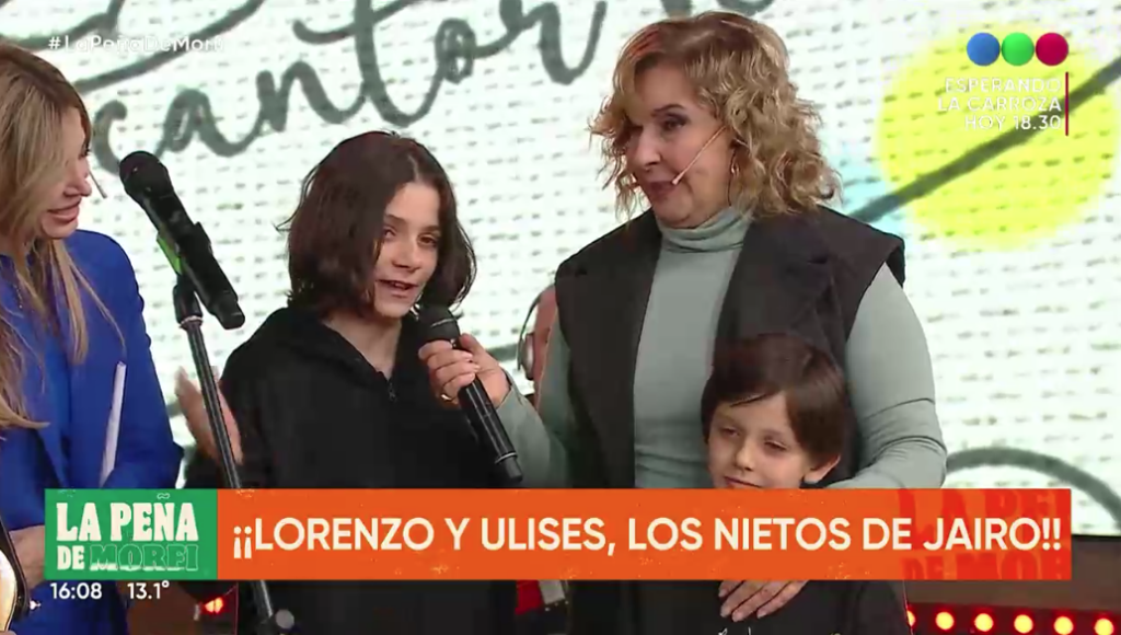 En julio del 2023 Jairo se presentó en La Peña de Morfi, promocionando su gira por sus 50 años con la música. Pero esa vez el querido cantante fue sorprendido por la presencia de dos de sus siete nietos. Lorenzo y Ulysses, los hijos de Iván González, le alcanzaron un cuadro con sus dibujos, lo que alegró al cordobés.