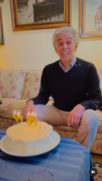 "Celebrando la vida. 75 primaveras. Abrazos a todos por el cariño", escribió el cantante en su posteo, donde incluyó un video del momento.