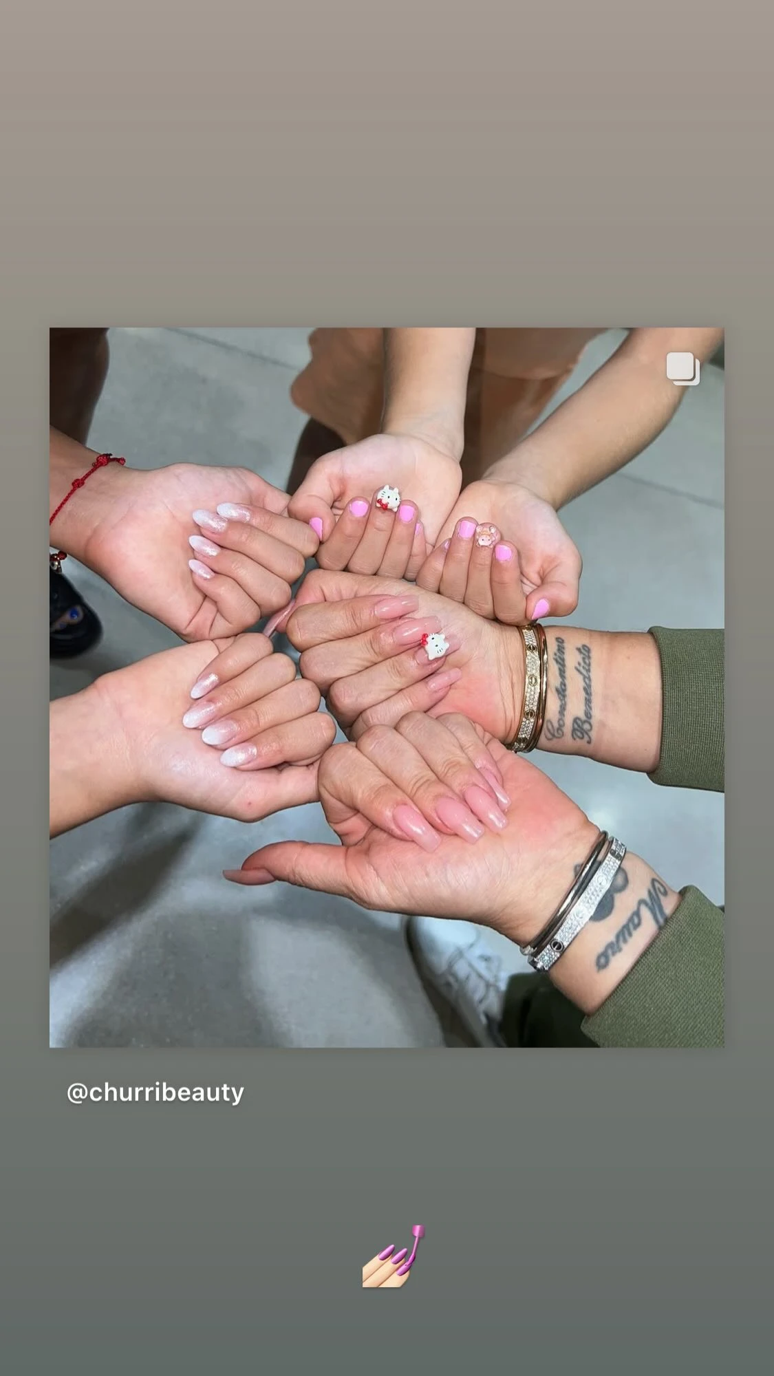 A través de sus redes sociales, Nara mostró la tarde de juegos con sus hijas en la que pintaron, hicieron juegos y durmieron una siesta. Sin embargo, hubo un detalle que no pasó desapercibido por sus seguidores: las tres se pintaron las uñas de rosas y se hicieron unos diseños inspirados en "Hello Kitty".