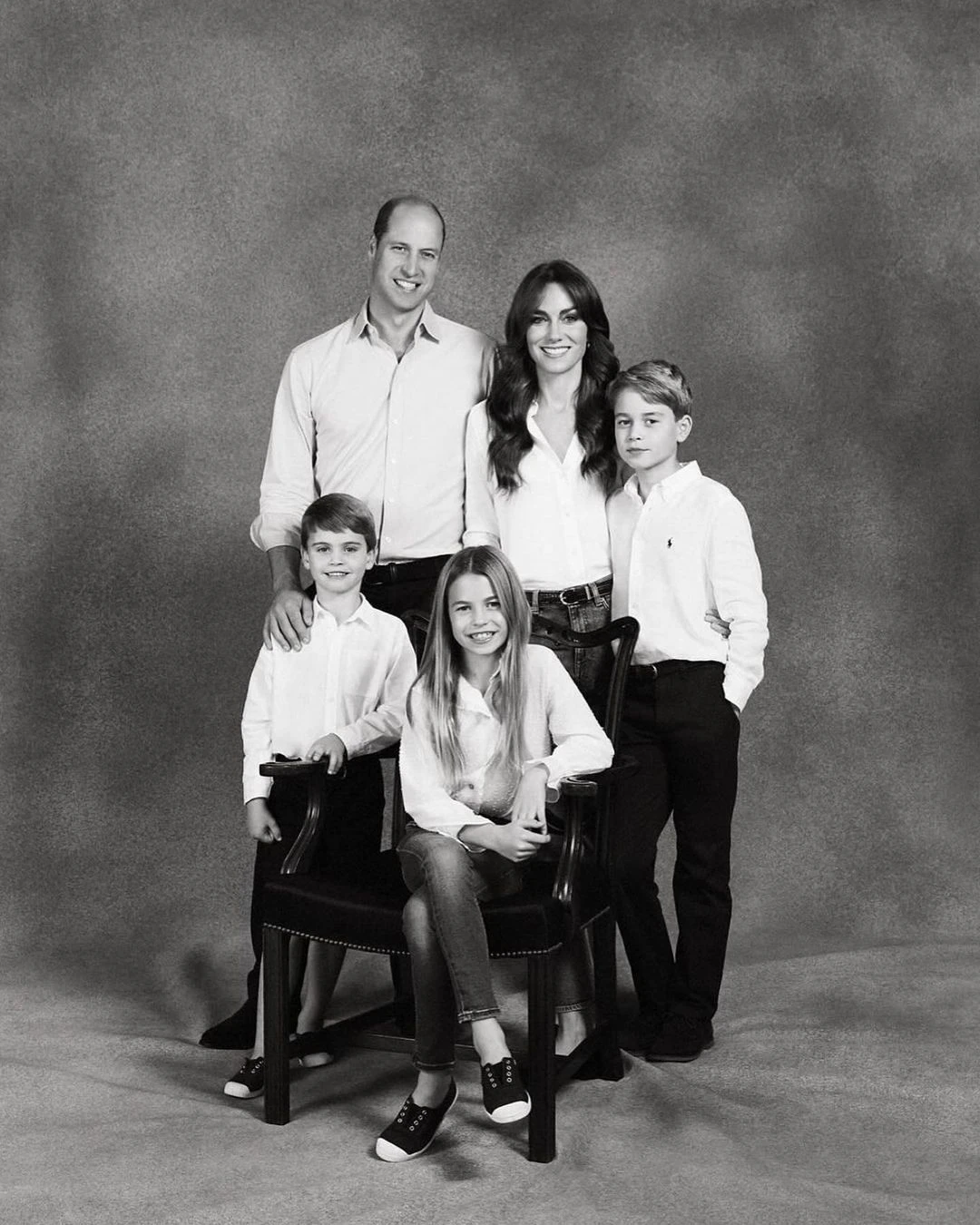 Las fotos fueron tomadas por Josh Shinner, su fotógrafo personal, que siempre suele retratar a sus integrantes. En esta oportunidad, la monarca eligió dos postales: una donde su marido e hijos aparecen de manera formal y en otra, donde están recostados en el césped disfrutando de la naturaleza.