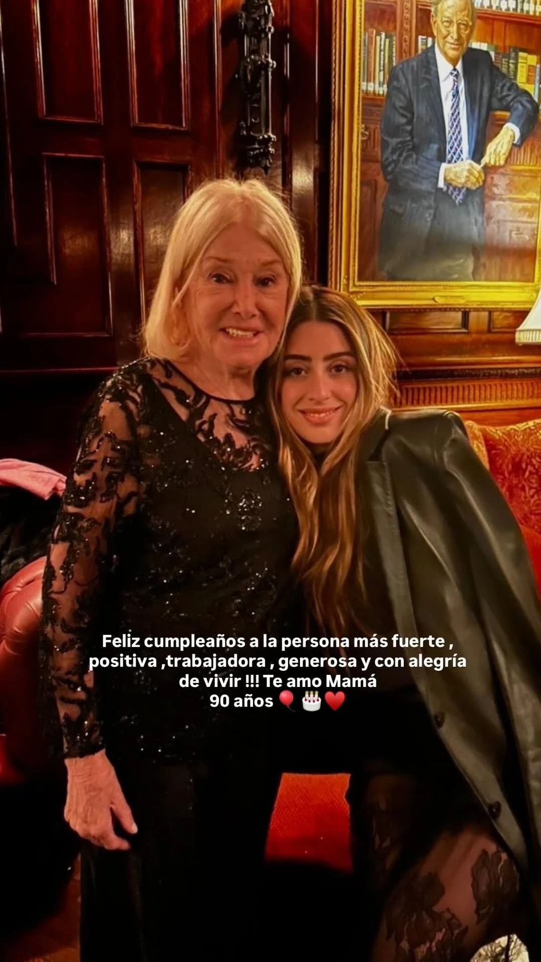 Junto a las imágenes, Awada escribió un mensaje cargado de admiración y cariño: “Feliz cumpleaños a la persona más fuerte, positiva, trabajadora, generosa y con alegría de vivir! Te amo Mamá, 90”, acompañado por emojis de corazón y de torta.