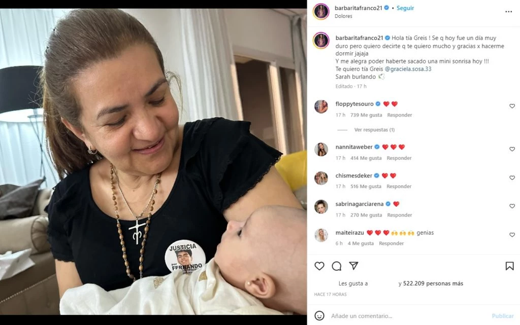 En la imagen se puede ver a Graciela sosteniendo en sus brazos a la beba de casi dos meses mientras la mira atentamente y sonríe. A los pocos minutos, el emotivo posteo cosechó más de 500 mil "likes" y cosechó miles de corazoncitos rojos.
