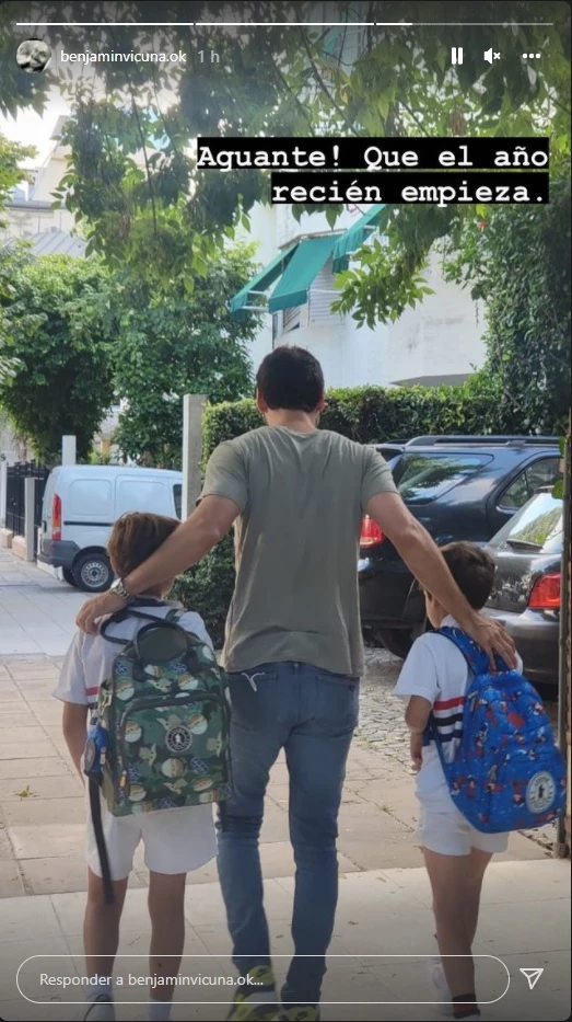 Este viernes, aprovechó para acompañar a Benicio y Beltrán al colegio ya que esta semana comenzaron las clases. "¡Aguante! Que el año recién empieza", comentó sobre la tierna fotografía donde se lo veía de espaldas junto a sus pequeños que lucían sus uniformes y mochilas rumbo a la escuela.