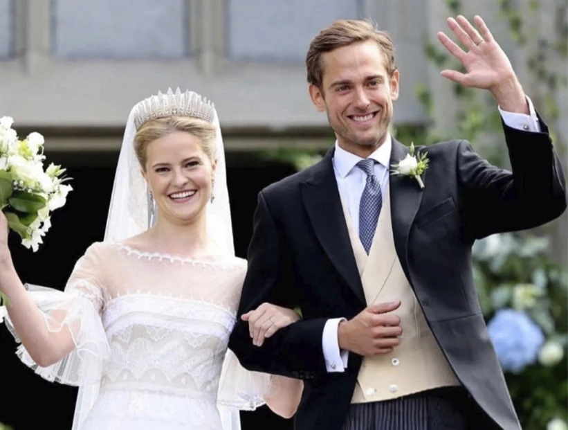 María Carolina impactó con un vestido romántico de encaje y tul, con mangas transparentes y una falda con vuelo que combinó tradición y modernidad. Su mayor joya fue la tiara Fringe de los Habsburgo, una pieza histórica del siglo XIX en forma de kokoshnik adornada con diamantes, elegida en lugar de la tiara que usó su madre en su propio casamiento.