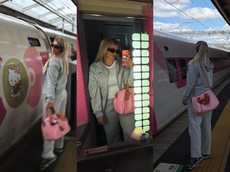 Uno de los momentos más destacados del viaje fue su experiencia a bordo del famoso tren bala en Hiroshima. Se trata de uno de los medios de transporte más emblemáticos del país, reconocido por su velocidad, comodidad y vistas panorámicas. Desde allí, la empresaria compartió postales relajadas del trayecto, dejando ver también su look elegido para la ocasión.