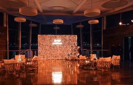 El evento se realizó en un salón de la Ciudad de Buenos Aires, decorado con una estética moderna, luces cálidas, cortinas brillantes y mucho glitter, que crearon un ambiente festivo y alegre.