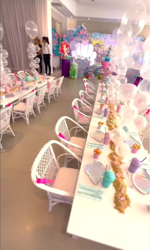 A través de su cuenta de Instagram, la modelo mostró la intimidad de la celebración y los detalles de la increíble decoración: globos de colores rosa y celeste, enorme cartel con su nombre e imágenes de La Sirenita y los personajes que acompañan la exitosa película de Disney.