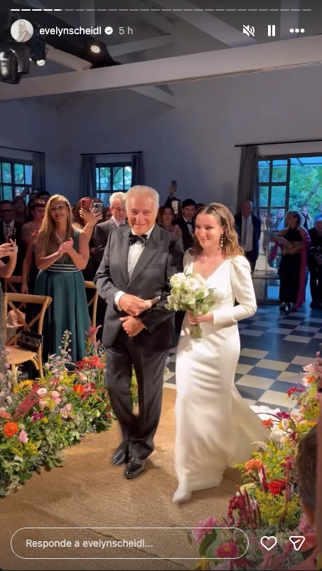 Si bien no trascendió la locación de la fiesta, se trató de una mega celebración en un elegante salón, donde se llevaron a cabo todos los momentos clásicos del casamiento. La ceremonia religiosa tuvo uno de sus instantes más emotivos cuando la novia llegó al altar del brazo de su padre, Alberto Hazán, generando una fuerte emoción entre los presentes.
