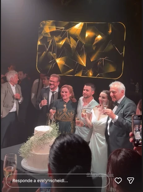La fiesta continuó con el tradicional vals de los novios y el esperado corte de torta, que compartieron junto a sus padres, en una postal familiar cargada de simbolismo. También hubo baile hasta el amanecer y se presentaron en vivo Los Totora, en uno de los momentos más divertidos de la celebración.