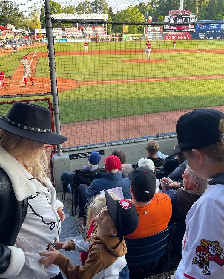 "Disfrutando de una hermosa tarde con toda la familia en Thenat alentando a los Canadians baseball team", escribió la artista junto a una serie de fotos que mostraban su día junto al cantante y sus pequeños, Noah, Elías y Vida.
