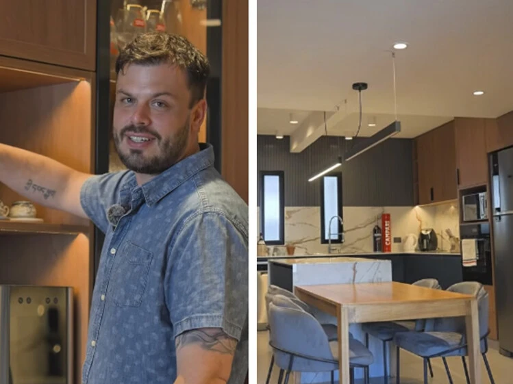 Uno de los movimientos clave fue demoler la antigua dependencia de servicio para ampliar la cocina, una decisión que modificó la lógica del espacio y lo adaptó a una dinámica familiar más actual. La obra fue mostrada paso a paso, con videos en los que se lo veía entre escombros, planos y avances semanales, dejando ver el detrás de escena real de una remodelación profunda.