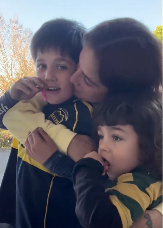 En el video se escucha a Juana decirles: “Beli, Toro… van a tener un hermanito”. La reacción fue inmediata: Toro salió corriendo por el parque a patear una pelota mientras gritaba que siempre había querido un hermano más, y Belisario, el más pequeño, se acercó a tocar la panza de su mamá con ternura.