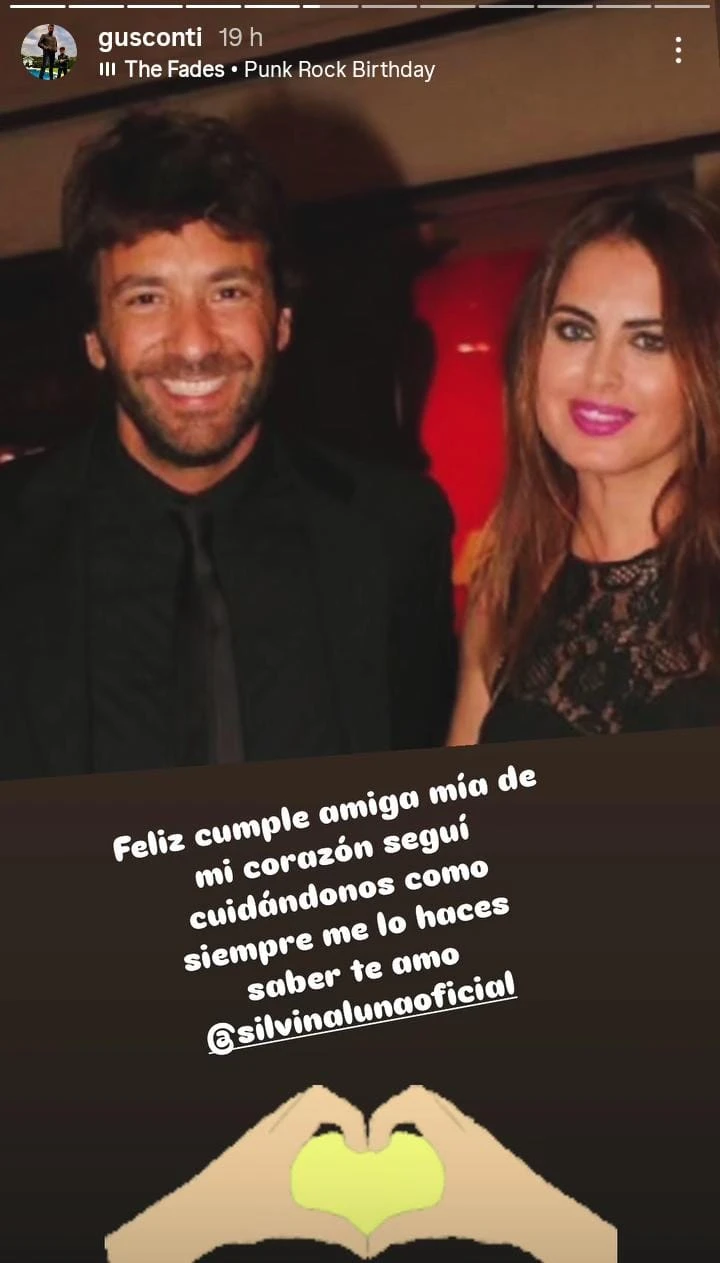 "Feliz cumple amiga mía de mi corazón. Seguí cuidándonos como siempre me lo hacés saber", expresó Gustavo Conti con una fotografía con Luna. Ambos conformaron una amistad desde su participación en el reality show que fue creciendo a lo largo de los años y se convirtieron en grandes amigos.