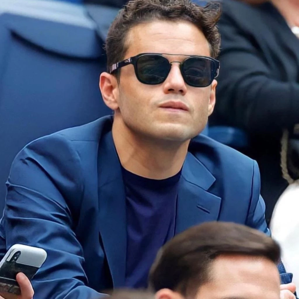 Otro que fue de la partida: Rami Malek, en un look total blue con remera y blazer al tono. También sumó lentes de sol.