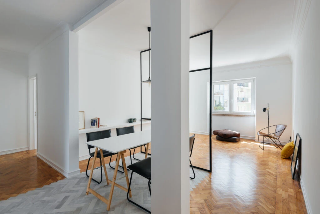 El estudio Atelier Pupa (@atelier_pupa) renovó y modernizó este departamento de dos ambientes con balcón en Lisboa, Portugal.