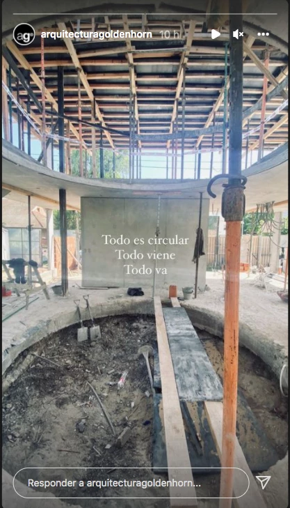 Recientemente, volvió a hacerlo, haciendo alusión a la construcción de tipo "circular" que viene mostrando. "Todo es circular. Todo viene, todo va", escribió el arquitecto en la foto donde se ve la particular estructura armada en el hormigón, de un gran espacio circular que conecta las dos plantas de la propiedad.