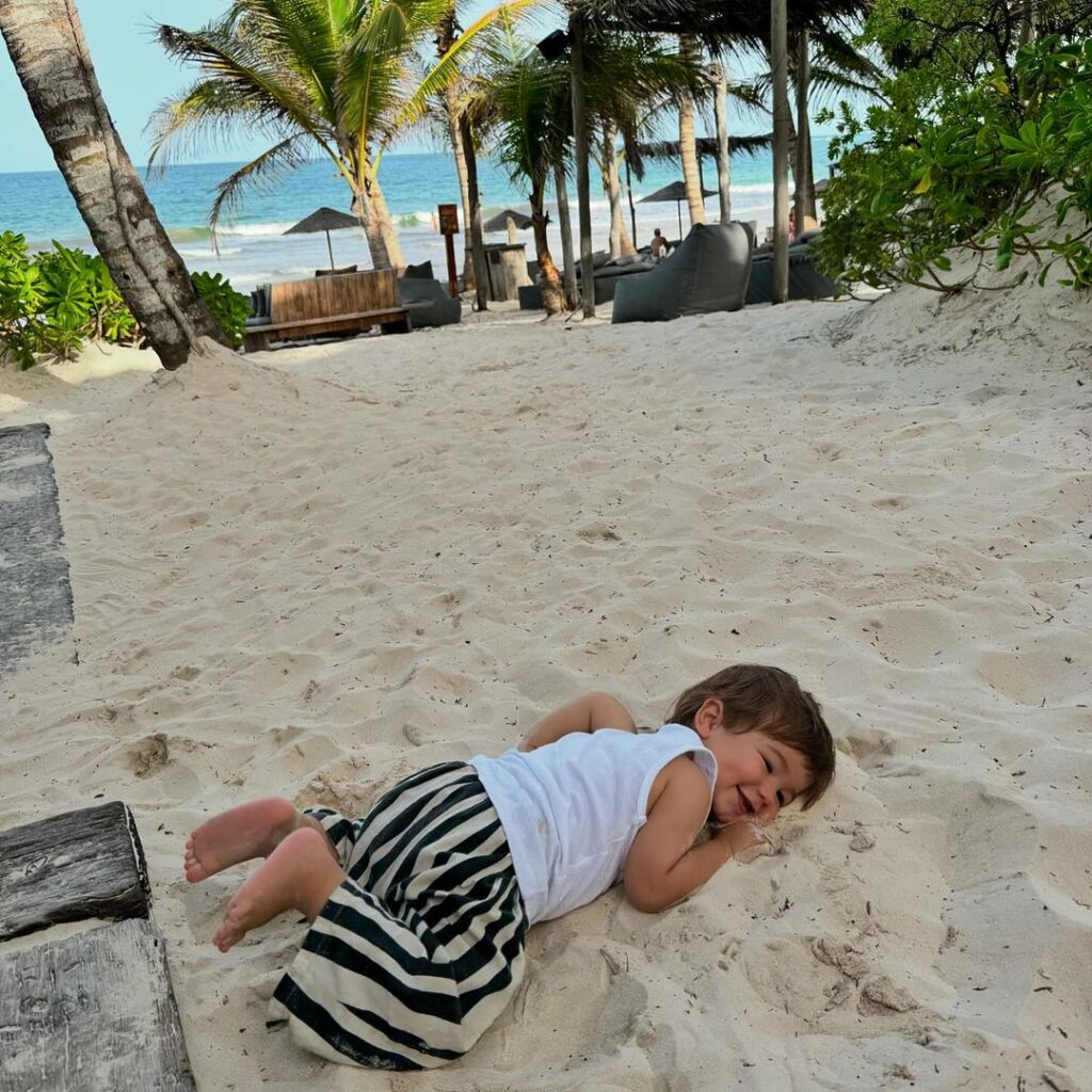 Sin embargo, la mujer se mostró muy feliz de realizar esta aventura con su hijo Tao. "Aprecio la cercanía al mar, estamos todo los días descalzos. Exploramos los misterios de este templo. Mar/ Piscina/ Mar. Compartimos tiempo en familia, dormimos con el sonido del mar. Esto es soñado", expresó.
