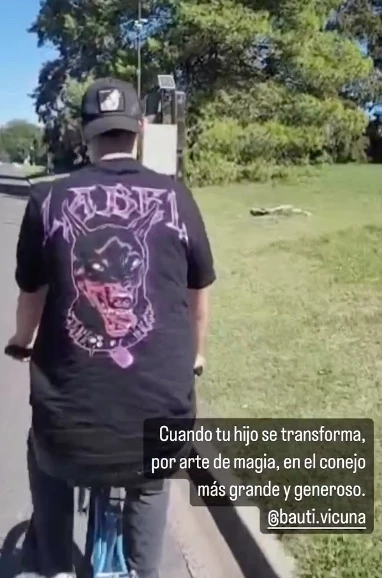 En este caso, contó con ayudante principal: su hijo mayor Bautista, quien decidió esconder huevos de chocolate para sus hermanos. "Cuando tu hijo se transforma por arte de magia, en el conejo más grande y generoso", expresó Benjamín, por medio de sus redes, mostrando al joven paseando en bicicleta y ayudando a sus niños.