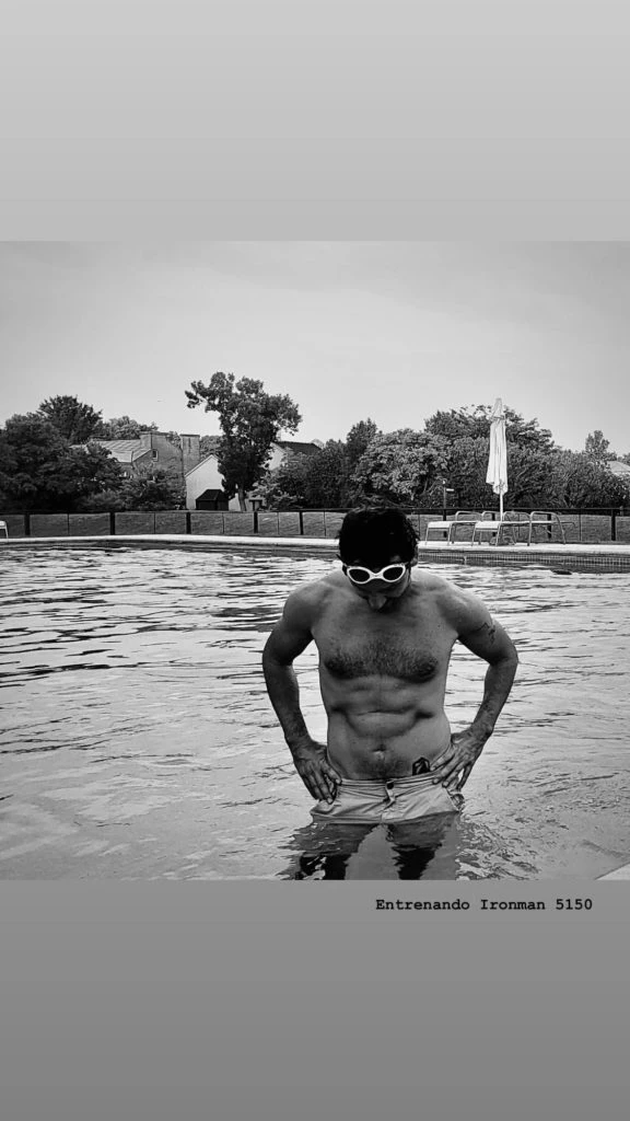 "Entrenando Iron Man 5150", escribió Vicuña junto a una de las fotos que publicó en su cuenta de Instagram, donde se lo ve al borde una pileta de natación.
